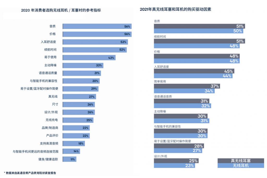 高通音頻產(chǎn)品使用現(xiàn)狀調(diào)查報(bào)告數(shù)據(jù)顯示,續(xù)航時(shí)間一直是消費(fèi)者在選購(gòu)無(wú)線耳機(jī) / 真無(wú)線耳機(jī)時(shí)的重要考慮因素,而且隨著 TWS 耳機(jī)的普及,以及疫情影響導(dǎo)致的用戶游戲娛樂(lè)和遠(yuǎn)程辦公場(chǎng)景快速提升,用戶的 TWS 耳機(jī)使用時(shí)長(zhǎng)在快速增長(zhǎng),從而更持久的續(xù)航成為消費(fèi)者更迫切的需求。