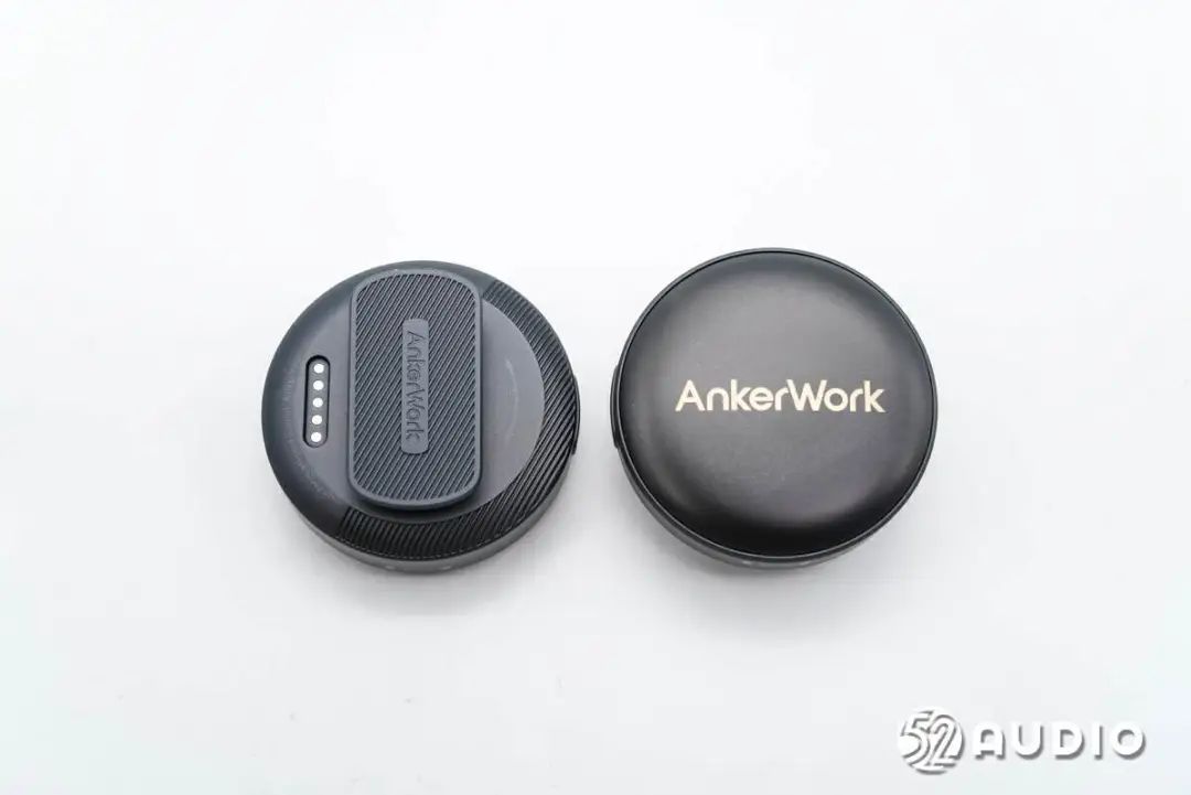 AnkerWork M650外觀具有一定的辨識度,發(fā)射器采用圓盤式設(shè)計,磁吸式領(lǐng)夾,前蓋可拆卸更換。接收器搭載1.47英寸觸摸屏,便于查看工作狀態(tài)及設(shè)置操作。配有一個四合一收納充電盒,可將接收器、發(fā)射器收納入盒,并為這些部件充電。