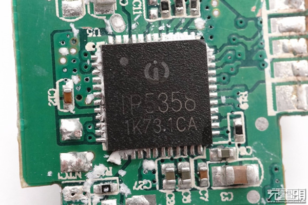 充電器AC-DC部分,由昂寶OB2365T主控芯片搭配東科次級同步整流芯片組成,方案集成度高,有效精簡電路降低產品成本。輸出端采用英集芯IP2163和IP5358來控制兩種模式下接口輸入輸出電壓,并且得益于英集芯IP5358的使用,使得移動電源成為為數(shù)不多支持OPPO私有快充的第三方電源產品之一。
