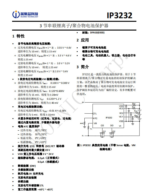 英集芯IP3232芯片:3節(jié)串聯(lián)鋰離子/聚合物電池保護(hù)器