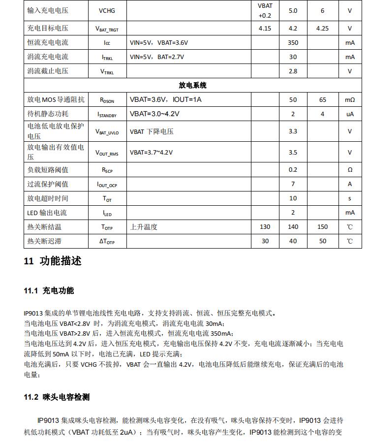 IP9013 集成的單節(jié)鋰電池線性充電電路,支持支持涓流、恒流、恒壓完整充電模式。恒流充電電流350mA,恒壓充電電壓4.2V;