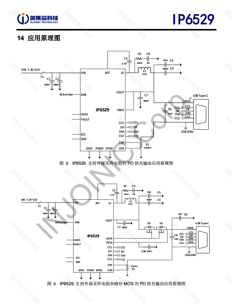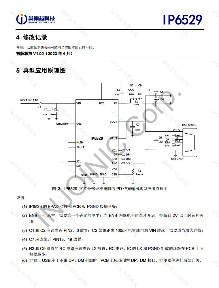 IP6529采用QFN24封裝,是一款集成同步開關的降壓SOC,支持多種快充輸出協(xié)議,為車載USB Type-C PD充電器提供完整的解決方案。