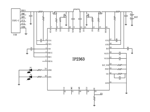 在充電管理方面,IP2363內置了IC溫度、電池NTC溫度和輸入電壓控制檢測環(huán)路,能夠根據識別到的充電器功率智能調節(jié)充電電流,確保充電過程的安全和高效。當斷開充電器后,芯片會自動進入低功耗模式,待機電流降低到僅5μA,極大地延長了電池的使用壽命。一旦插入充電器,芯片又能迅速自動喚醒充電。