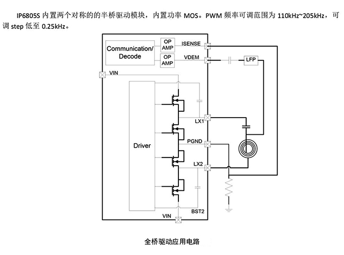 IP6805S內(nèi)置兩個對稱的半橋驅(qū)動模塊和功率MOS,提供卓越的驅(qū)動效果。值得一提的是,它還具有可調(diào)的PWM頻率范圍,可以在110kHz到205kHz之間進(jìn)行調(diào)節(jié),而且調(diào)節(jié)的步長可以低至0.25kHz,用戶可以根據(jù)實際需求進(jìn)行靈活的設(shè)置。