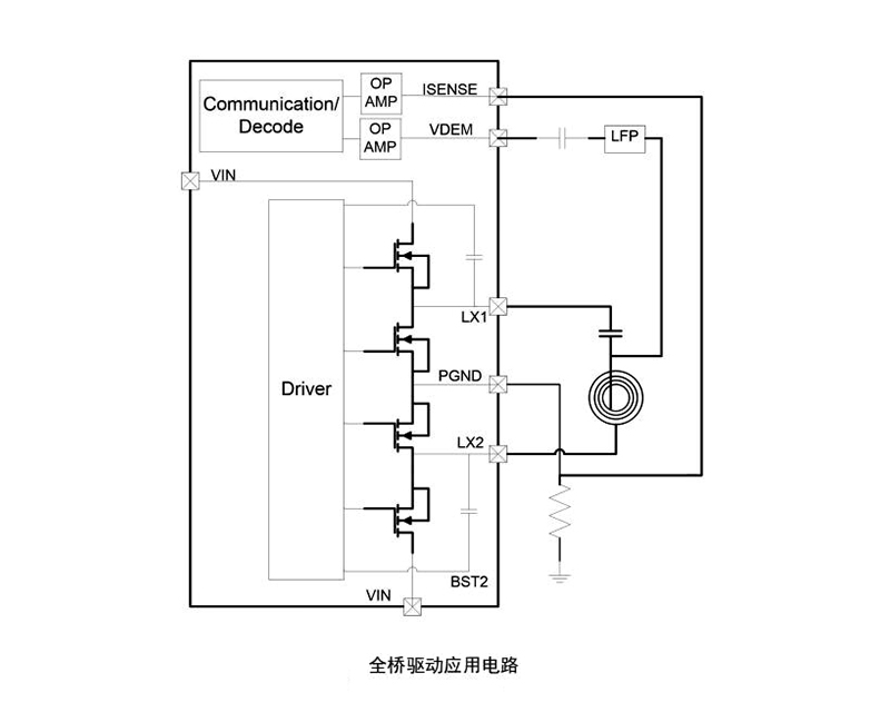 IP6825內(nèi)置兩個對稱的半橋驅(qū)動模塊和功率MOS,有可調(diào)節(jié)的PWM頻率范圍在110kHz~205kHz之間,調(diào)節(jié)的步長可以低至0.25kHz,用戶可以根據(jù)實際需求進行靈活的設(shè)置。