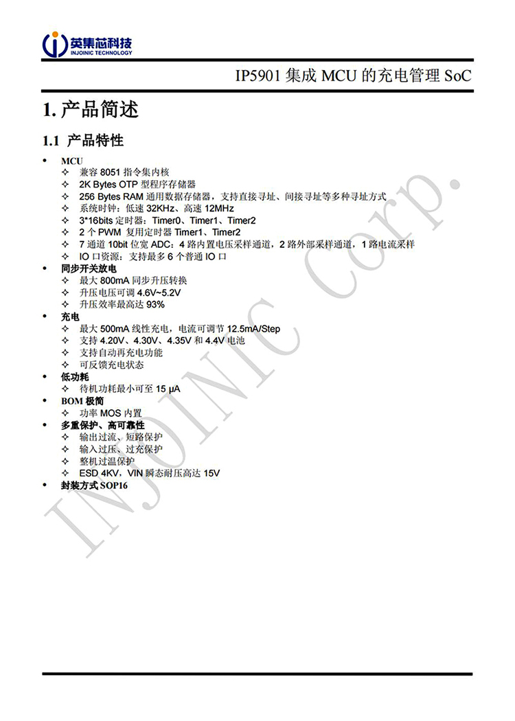 英集芯IP5901:集成鋰電池充電功能和兩個(gè)NMOS管的低功耗8位POWER MCU芯片