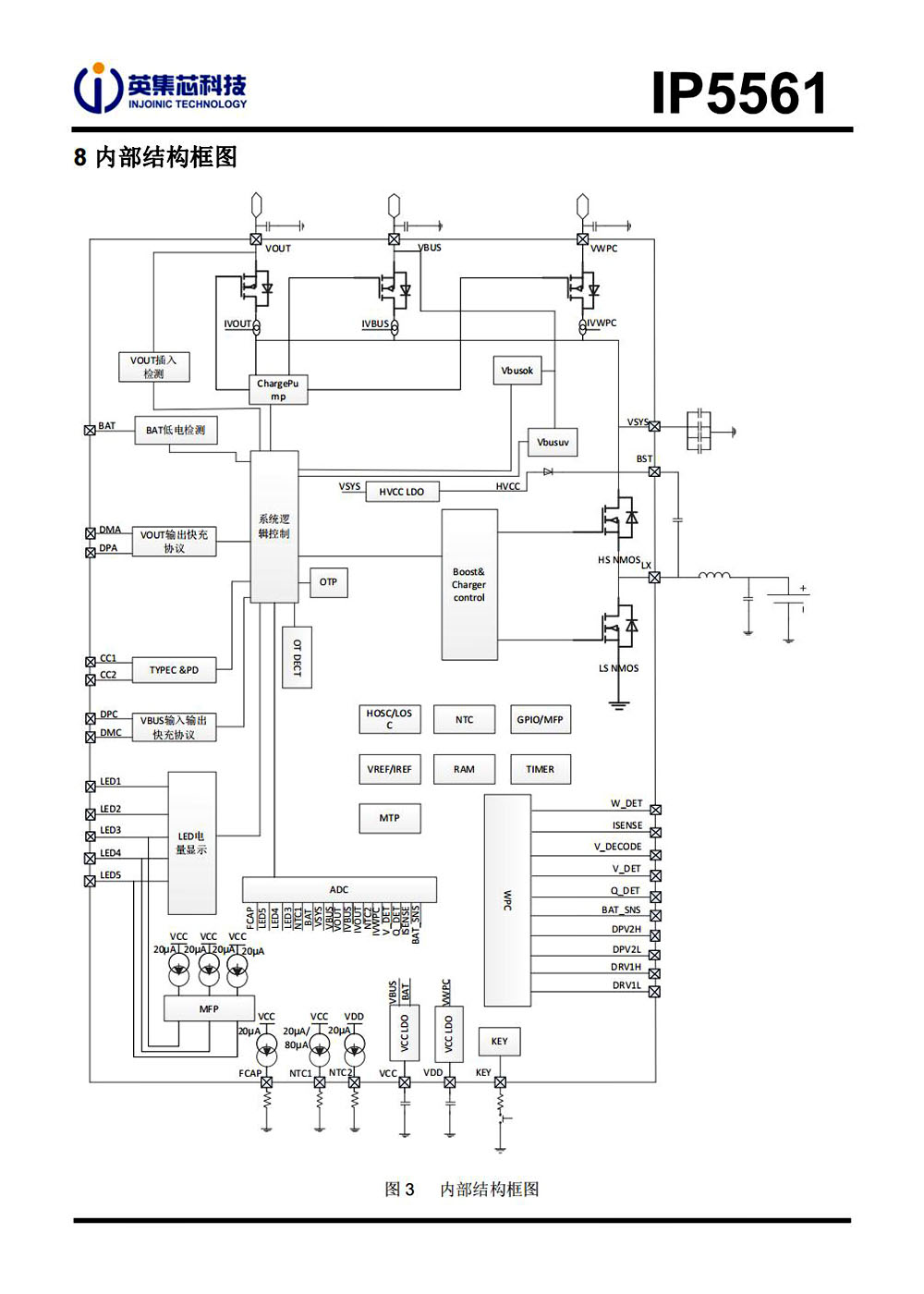 IP5561不僅在性能上出眾,更在電池管理方面展現(xiàn)了其智慧。采用先進的智能識別技術(shù),能夠?qū)崟r監(jiān)測電池狀態(tài),自動調(diào)整充電策略,確保電池在最佳狀態(tài)下充電。這種智能化的管理不僅提高了充電效率,更延長了電池的使用壽命,讓您的移動電源更加耐用、可靠。IP5561的智能管理功能,為用戶帶來了更加省心、省力的充電體驗。